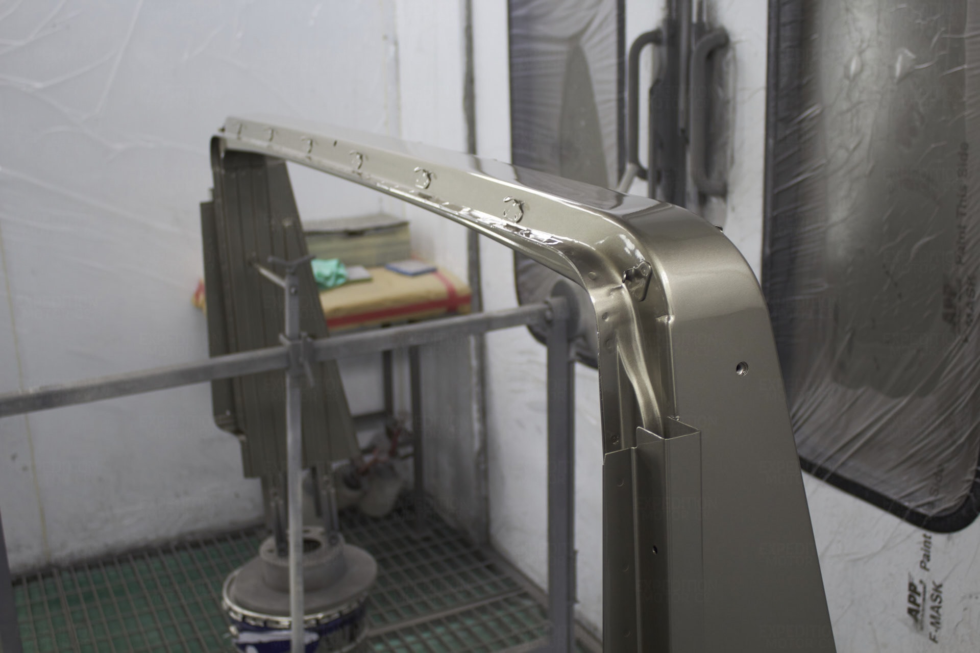 - Media blast frame to bare metal