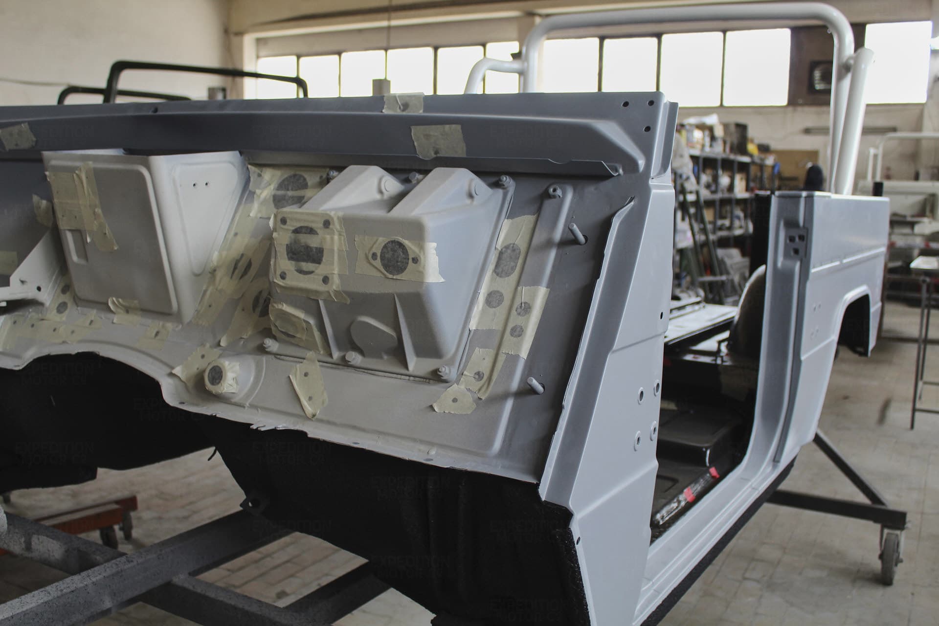 - Remove interior, remove wiring harness, disassemble body and remove from frame