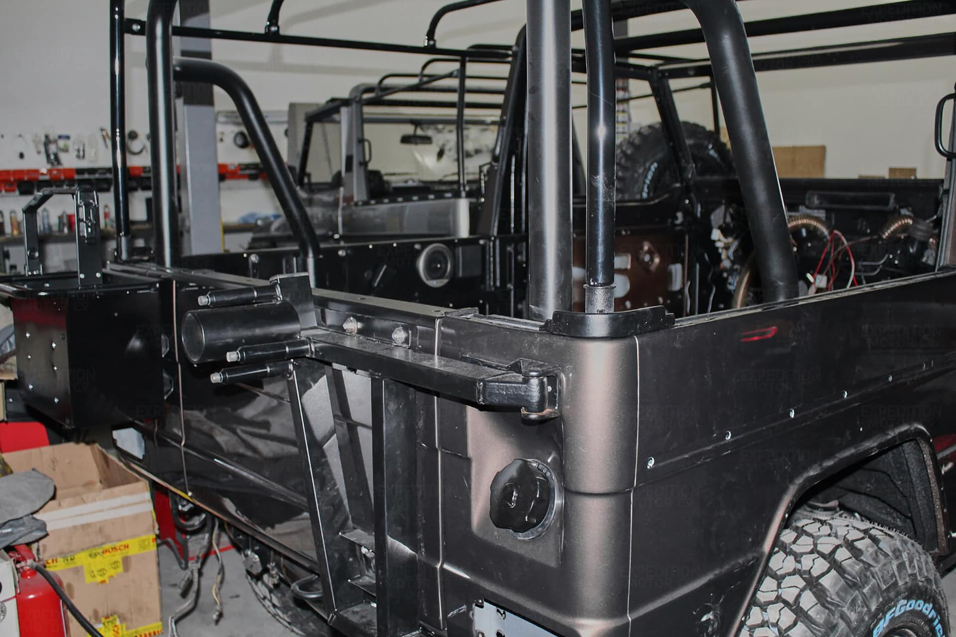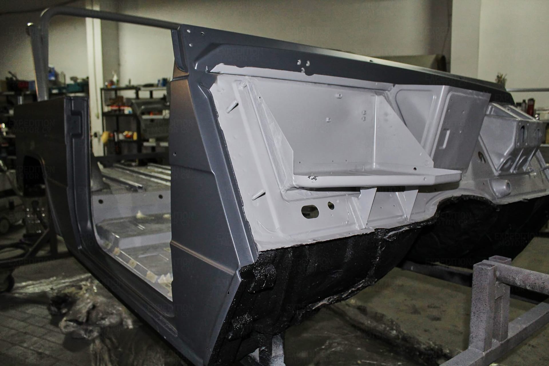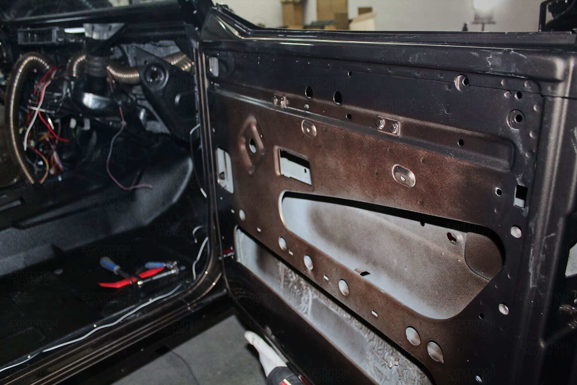 • Remove interior, remove wiring harness, disassemble body and remove from frame