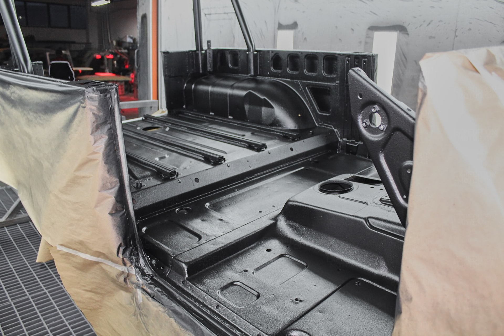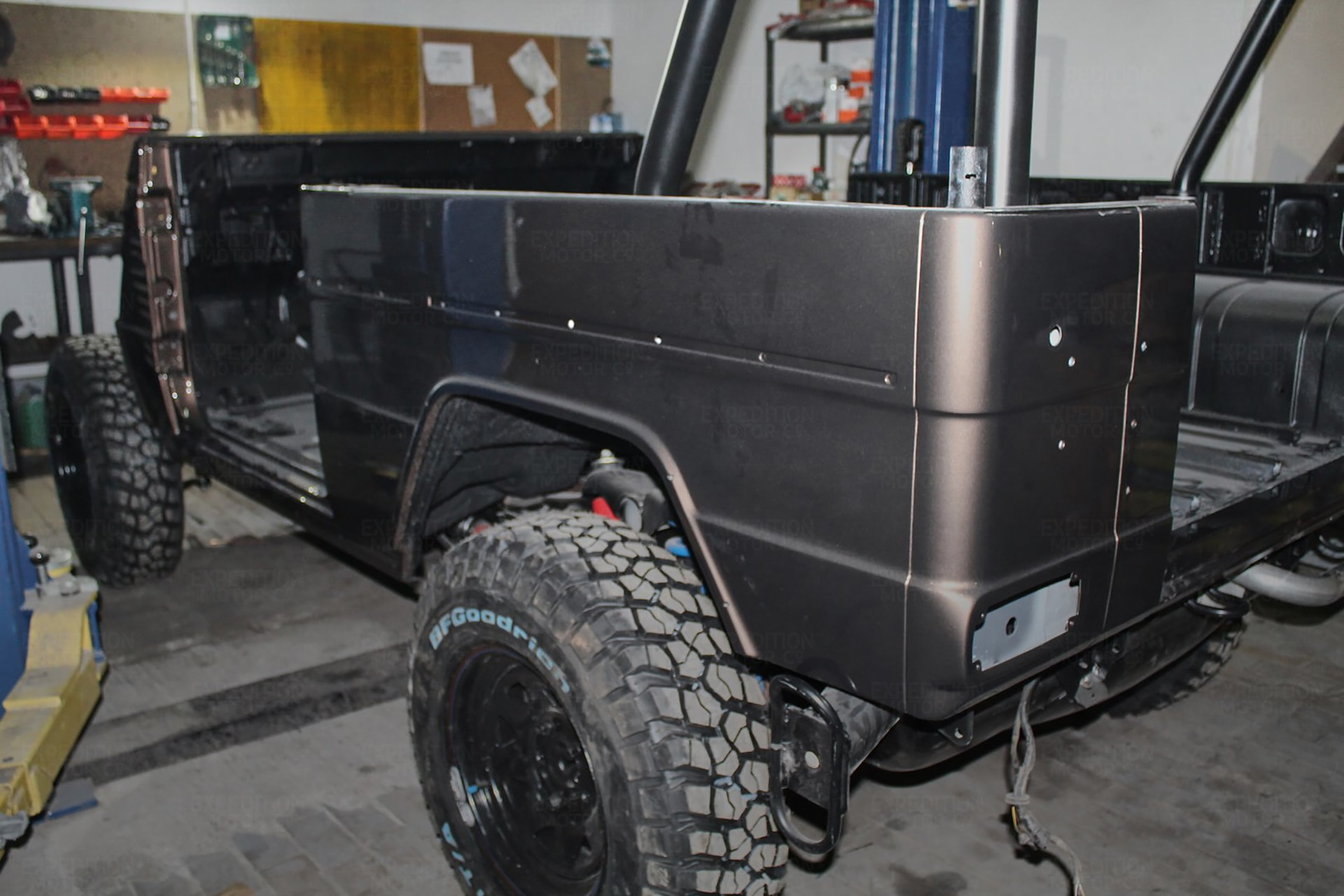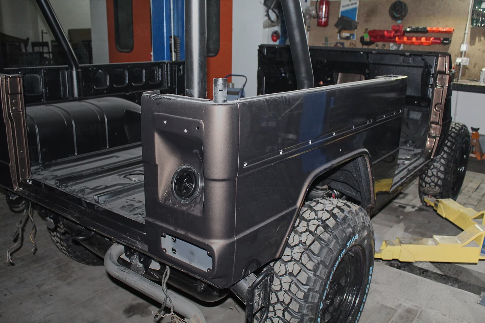 • Remove interior, remove wiring harness, disassemble body and remove from frame