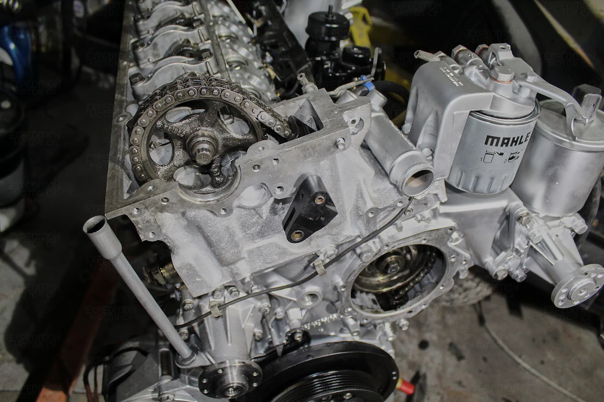 • Engine removed after testing cylinder compression and oil pressure