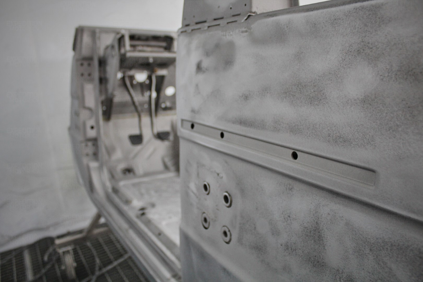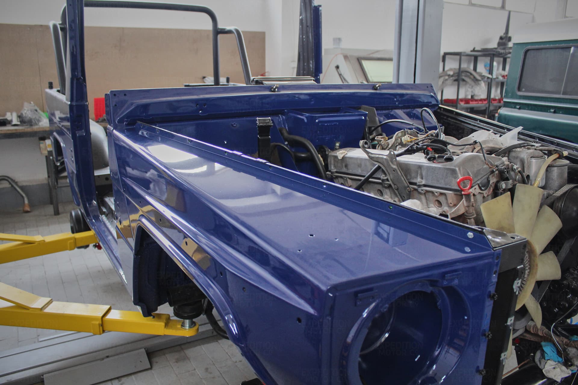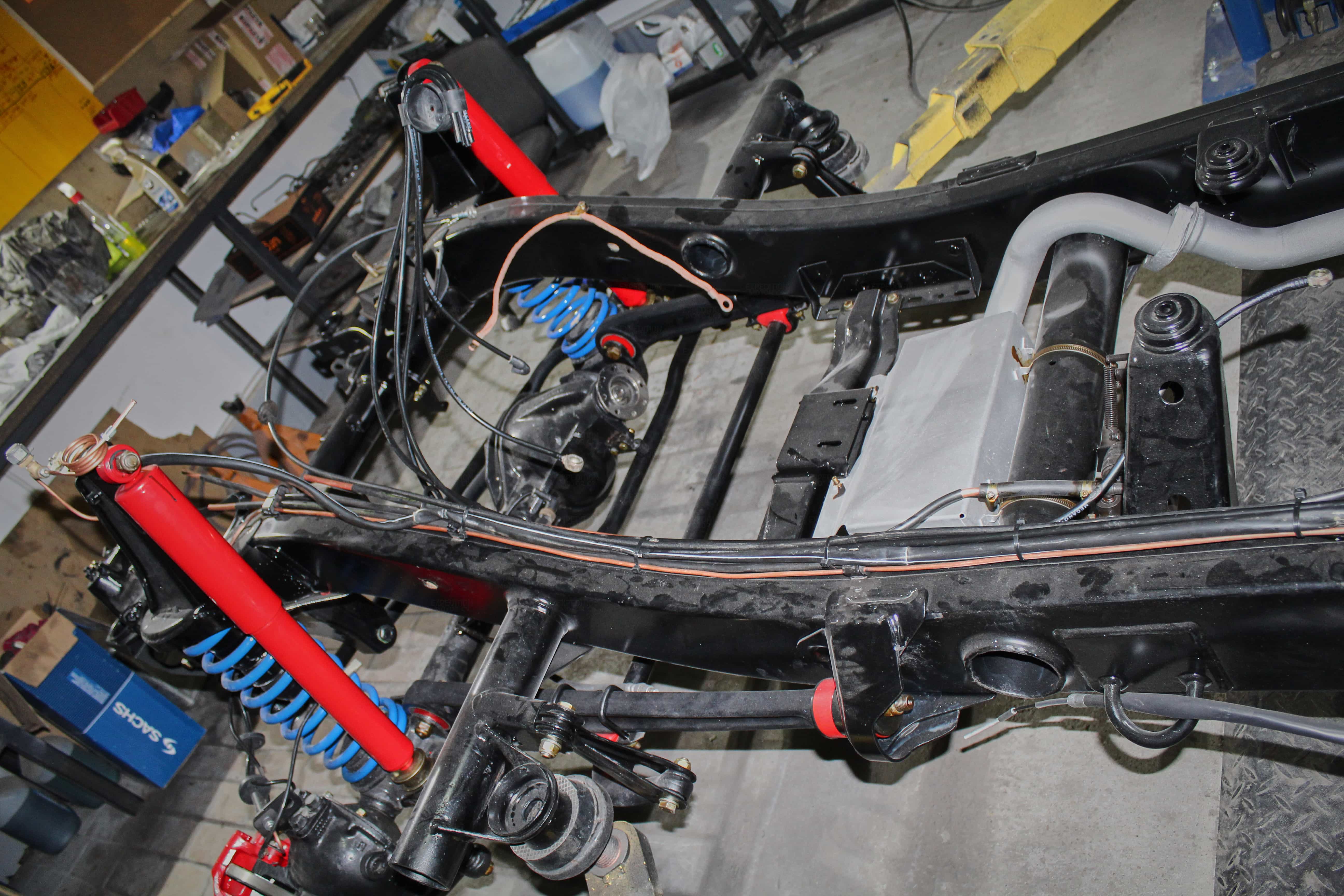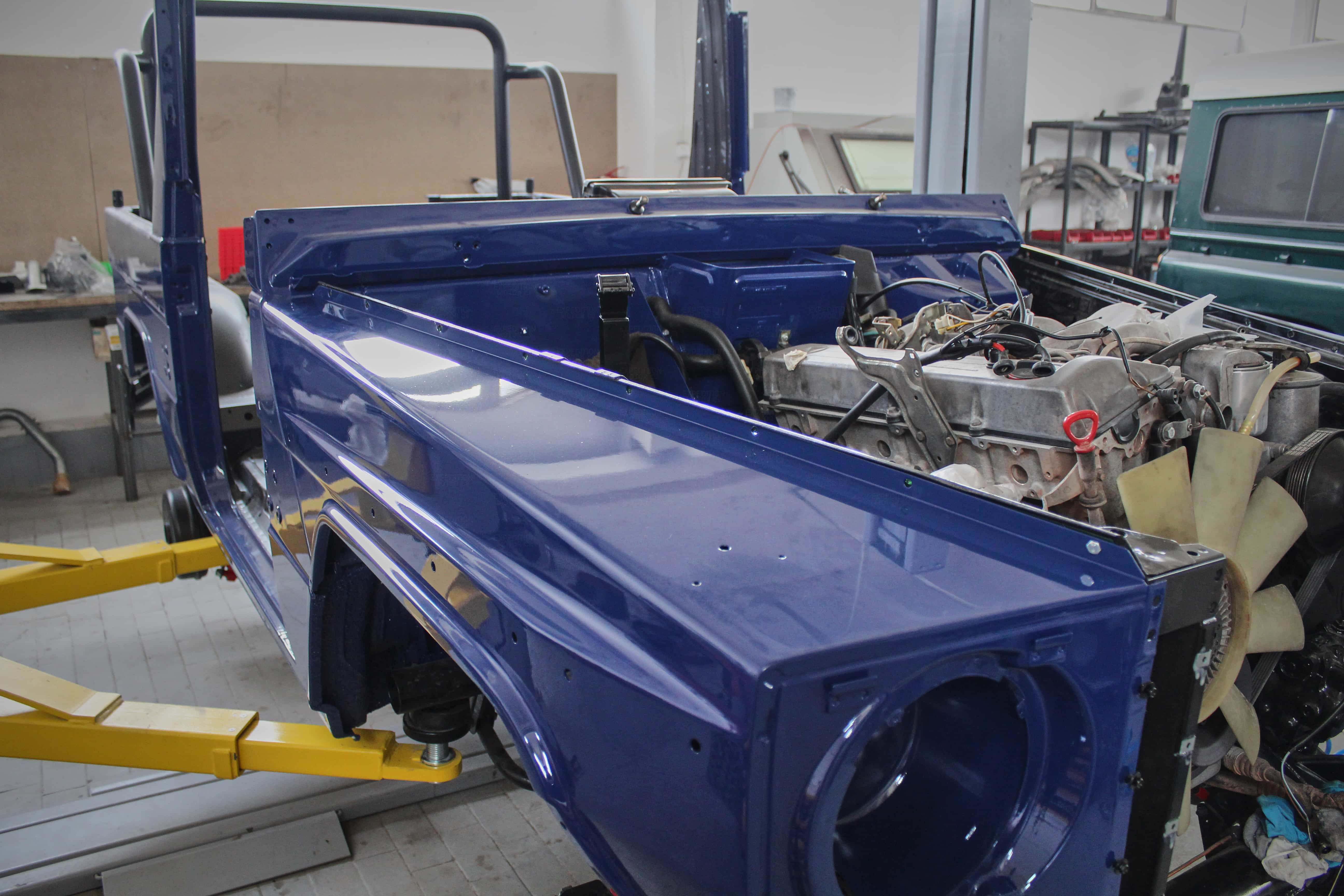 • Remove interior, remove wiring harness, disassemble body and remove from frame