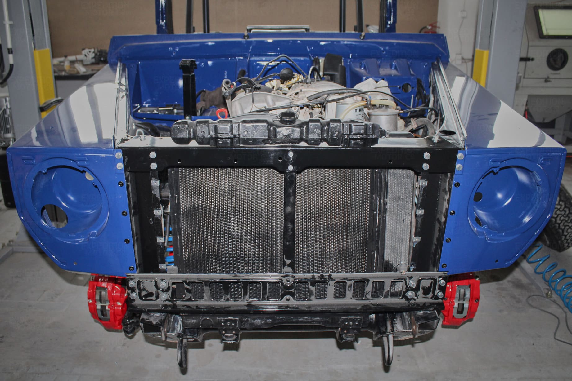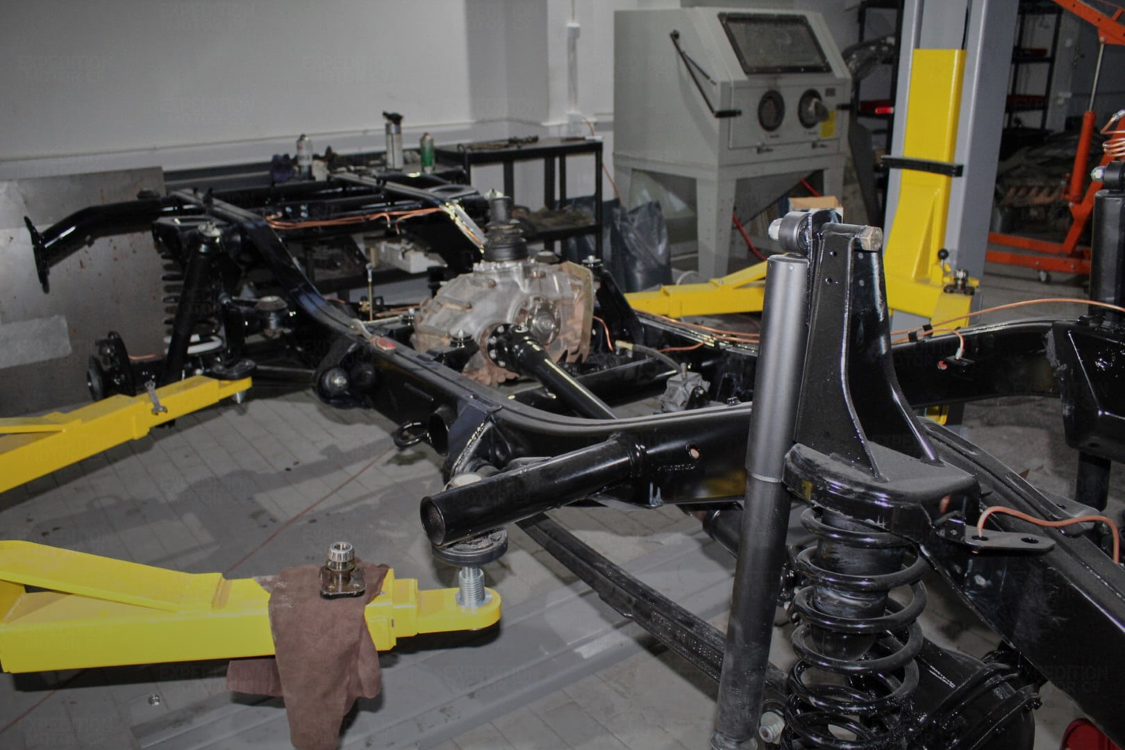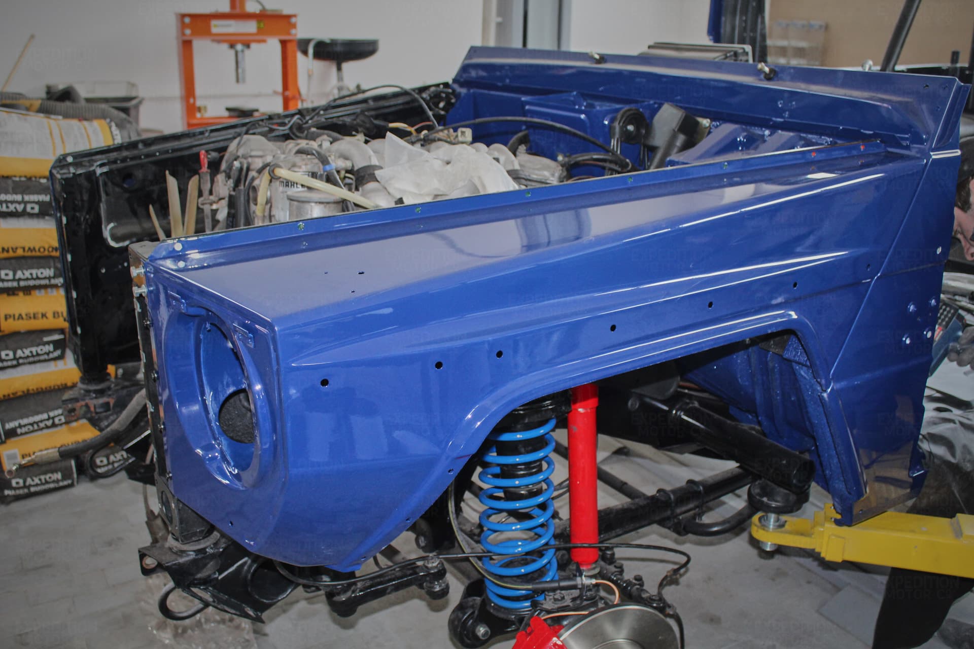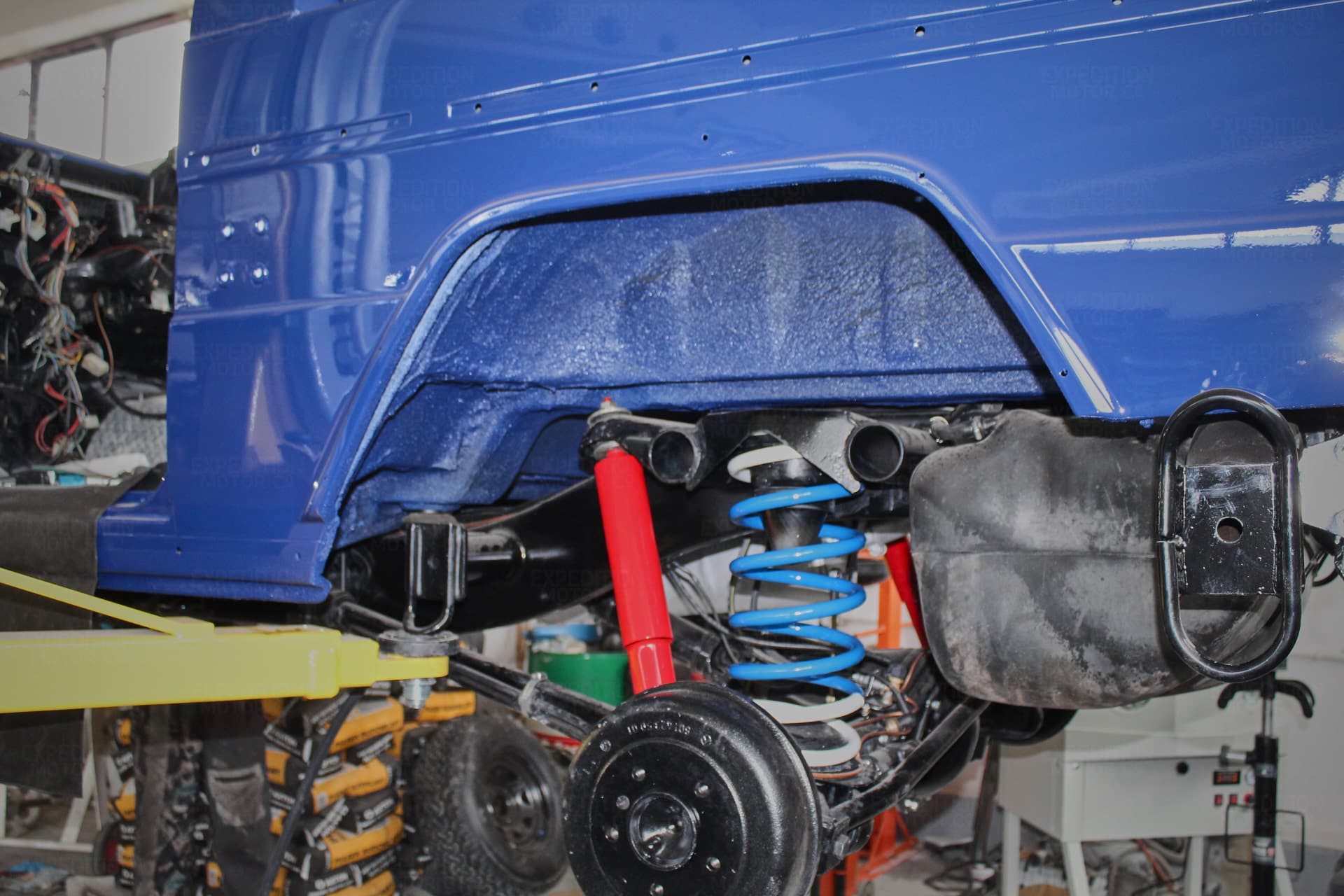 • Remove interior, remove wiring harness, disassemble body and remove from frame