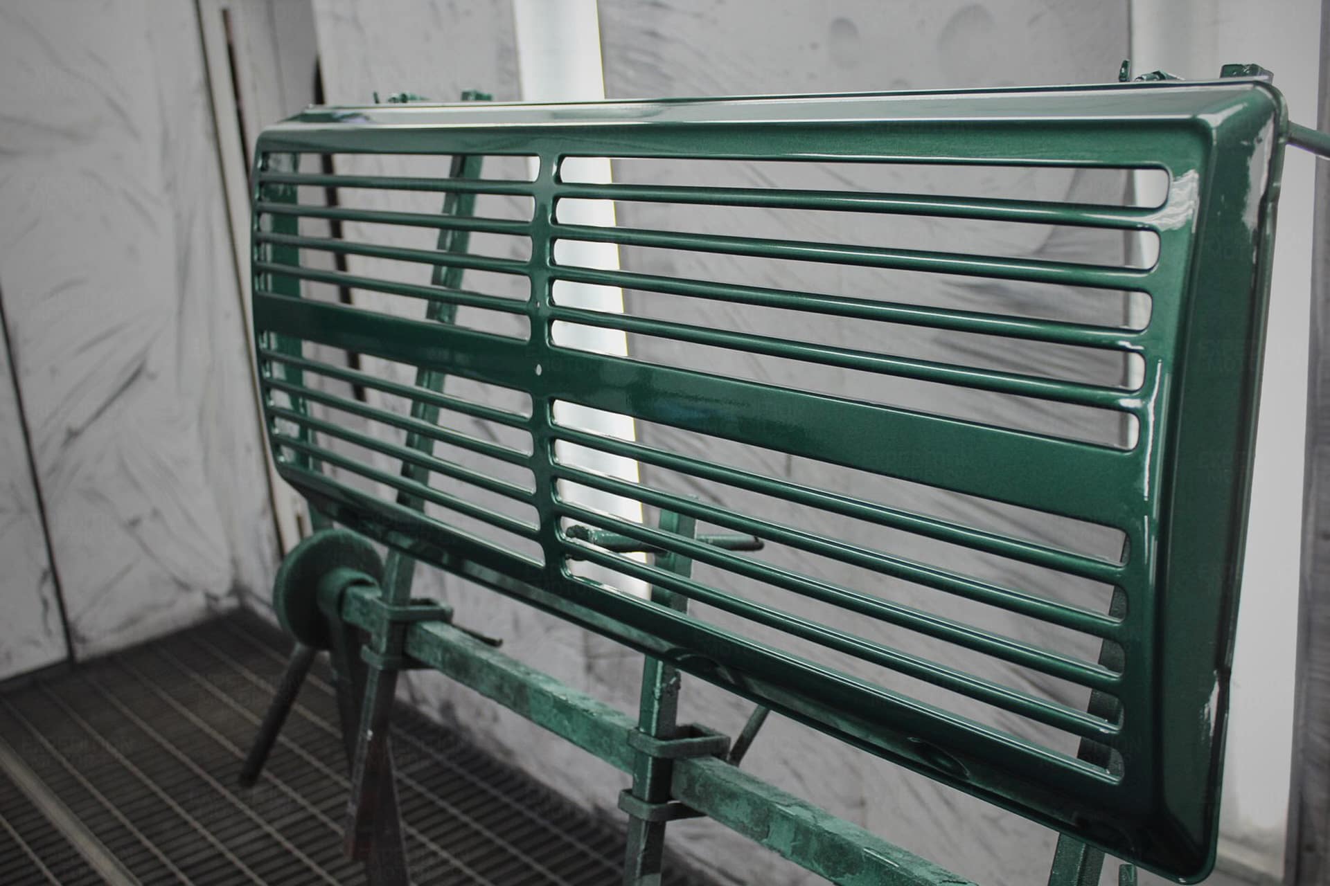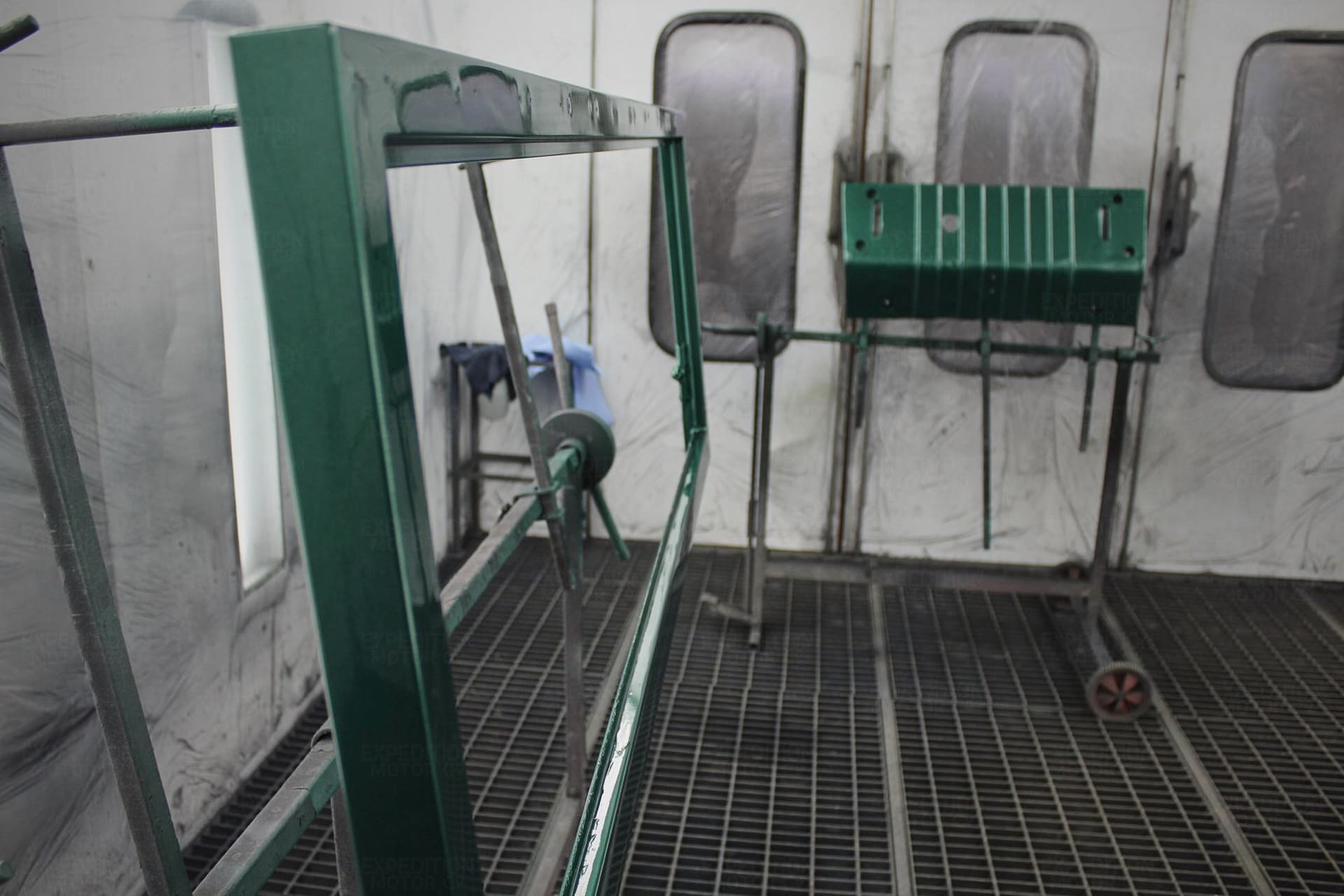 - Media blast frame to bare metal