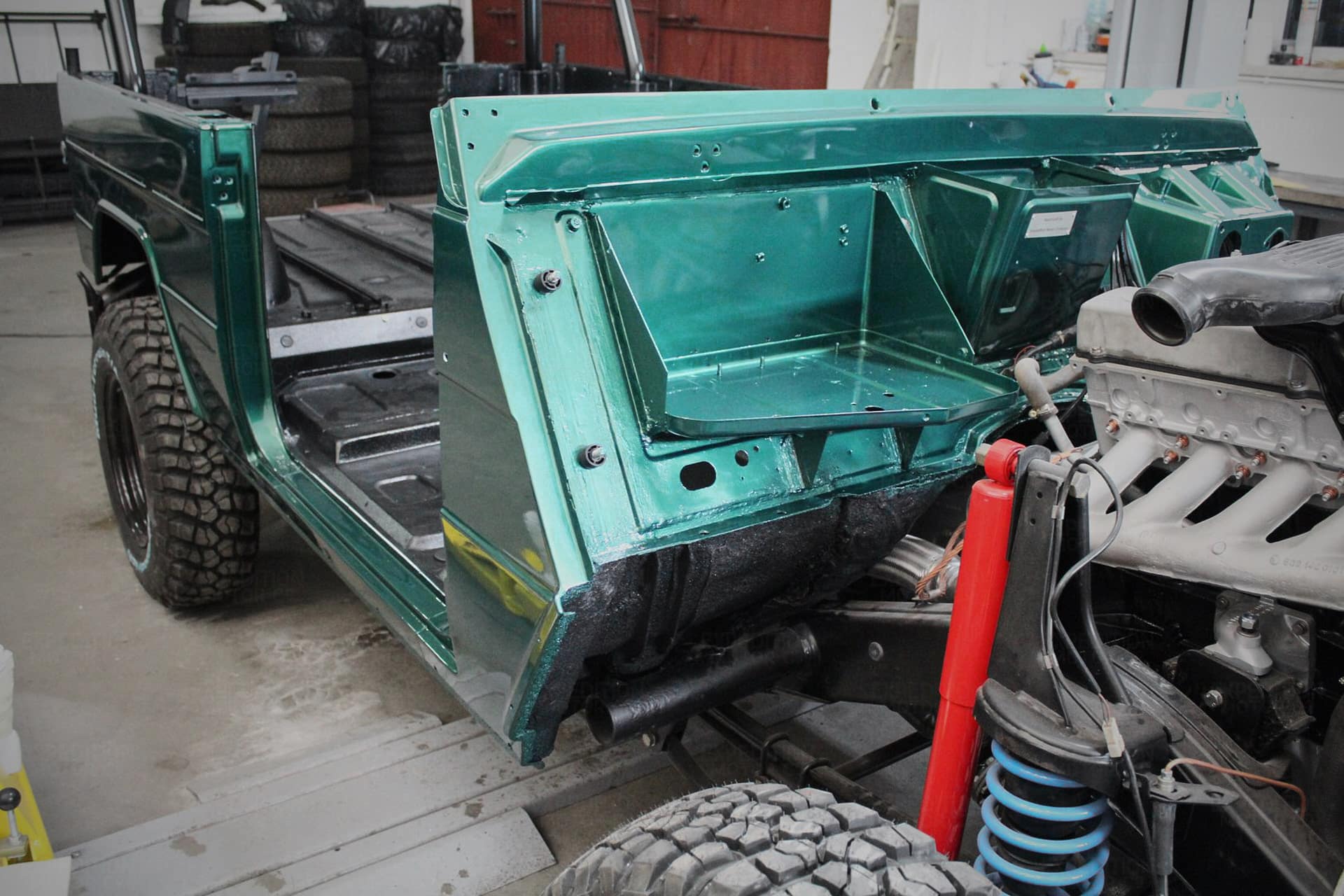 - Remove interior, remove wiring harness, disassemble body and remove from frame