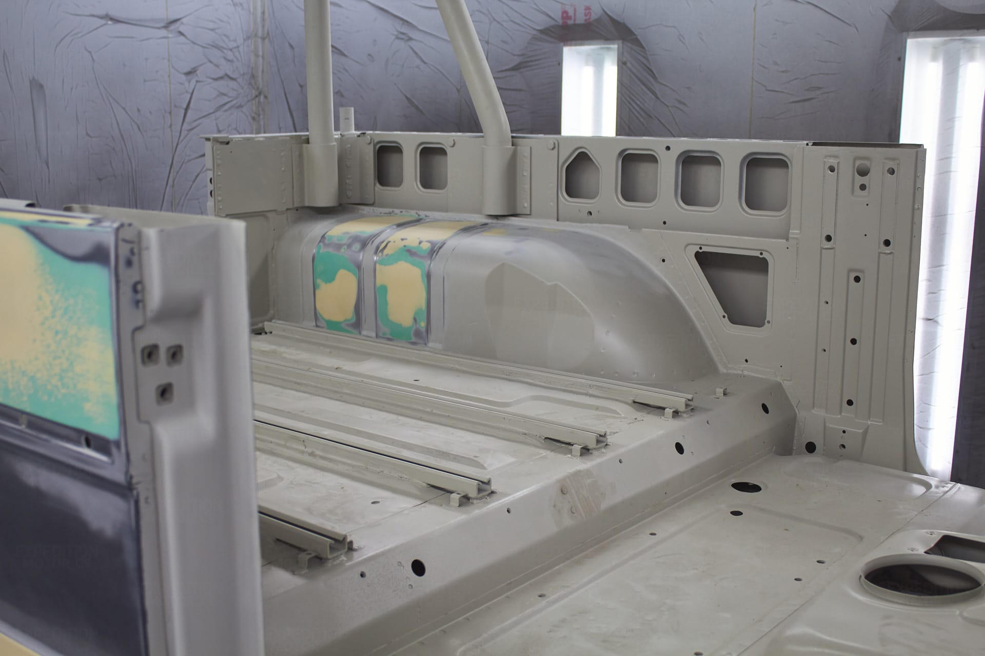 • Remove interior, remove wiring harness, disassemble body and remove from frame