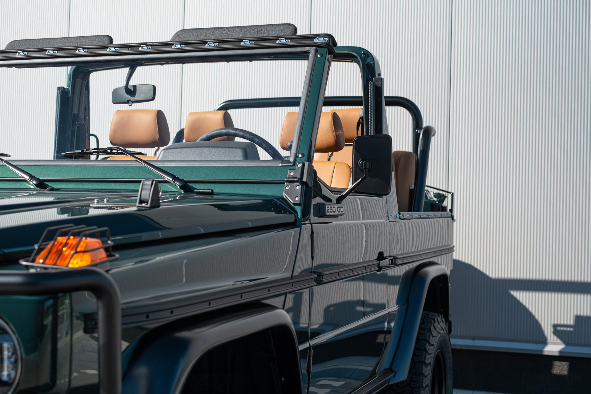 Introducing the 1990 Mercedes 250GD Wolf V5 in EMC Racing Green, paired with a luxurious Chestnut weatherproof interior. This convertible G Wagon took over 2,300 man-hours to restore and we’re more proud of it than you are of your first born.